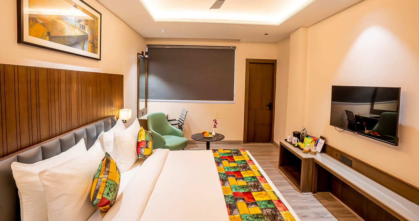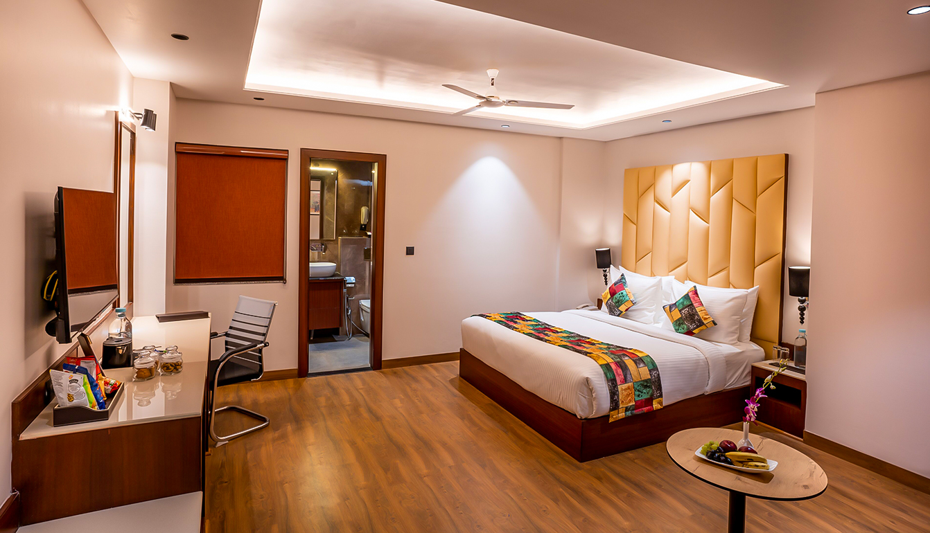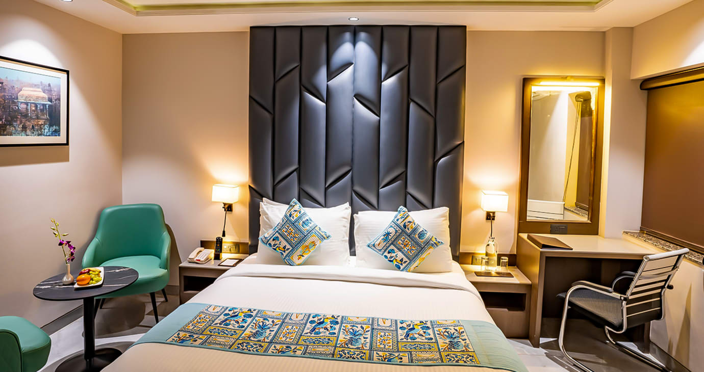 The Executive Room, at 310 Sq. Ft. caters to both leisure and business travellers with its modern amenities and spacious layout. It is designed for efficiency and relaxation, making it an ideal choice for guests.